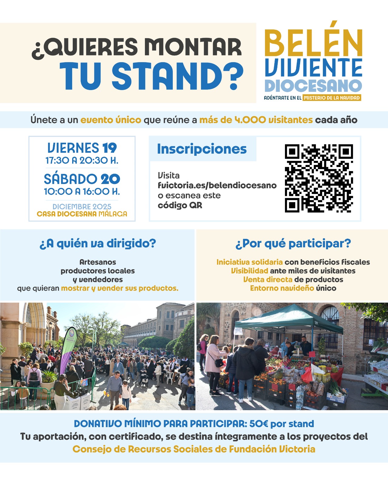 Participar también es colaborar: cada comerciante colabora con un donativo de 50 euros (valido para ambos días), destinado a los proyectos del Consejo de Recursos Sociales de Fundación Victoria, para familias con muchas necesidades.