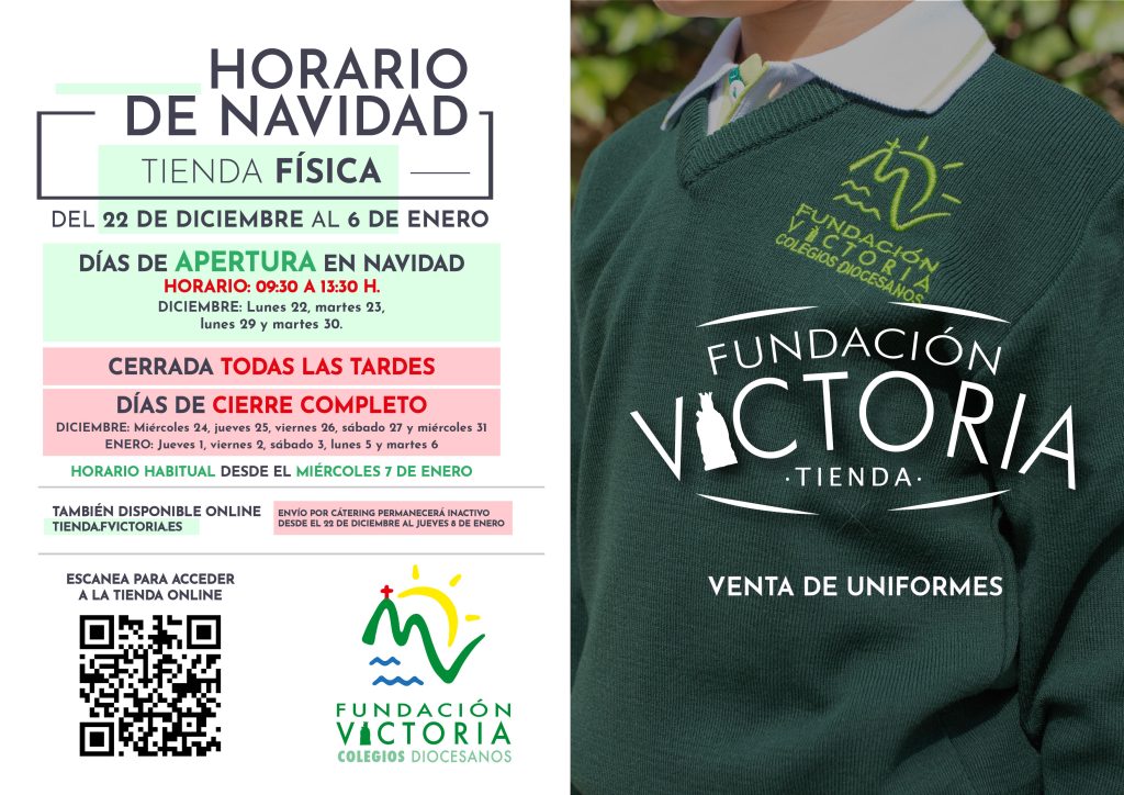 Con motivo de las celebraciones navideñas, la Tienda Fundación Victoria contará con un horario especial durante los últimos días de diciembre, con el objetivo de facilitar las compras a las familias antes del inicio del nuevo año.