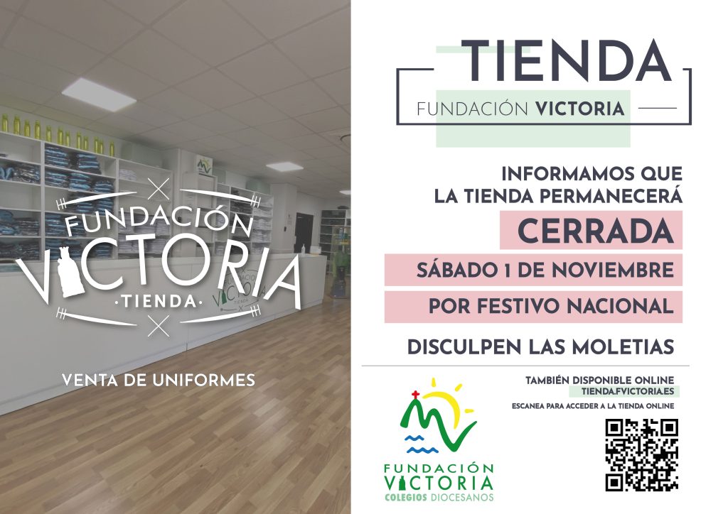 La Tienda Fundación Victoria permanecerá cerrada el sábado 1 de noviembre